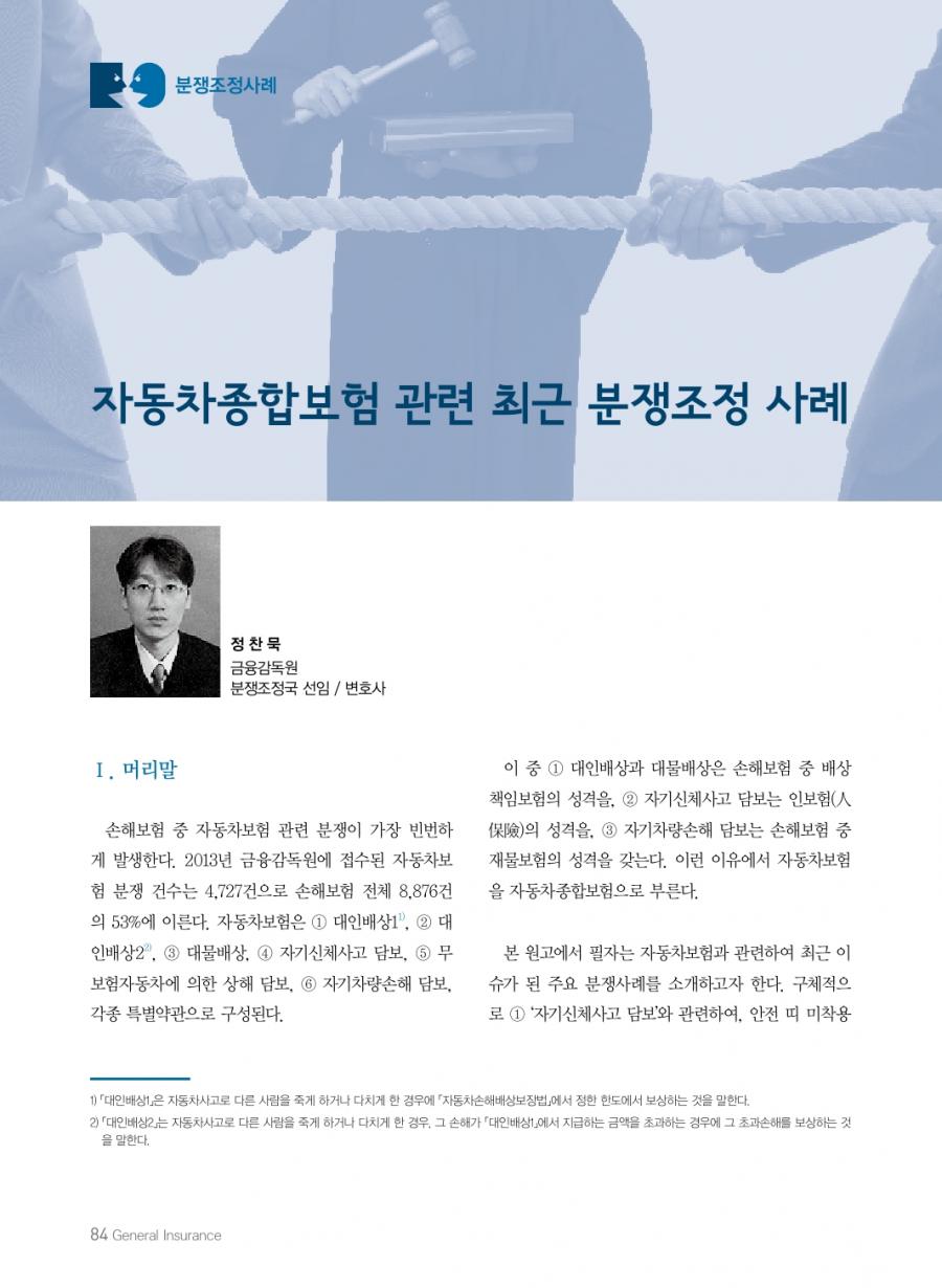 월간 손해보험 2015년 04월호 발췌 _ 자동차종합보험 관련 최근 분쟁조정 사례